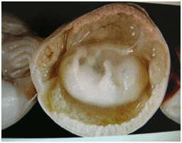 Ein Blastozyst (noch nicht voll entwickelte embryonale Zelle) hat sich gebildet, das Ovum (weibliche Eizelle) hat eine neue Form als Hohlkörper angenommen. Die sich weiter teilenden Embryonen liegen zunächst für ca. fünf bis sieben Tage frei und unregelmäßig in der Gebärmutter. Ihre Größe beträgt jetzt über 1 mm.