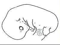Die Organbildung ist in vollem Gange und die Körperform ist in ihren Grundzügen erkennbar. Auch die Augenlieder beginnen sich zu bilden. Die Extremitäten sind in die Länge gewachsen.