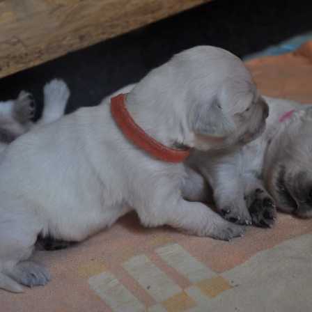 Jetzt sind die Augen und äußeren Gehörgänge geöffnet. Die Welpen nehmen in dieser Zeit ihre Geschwister sowie die Umgebung wahr.