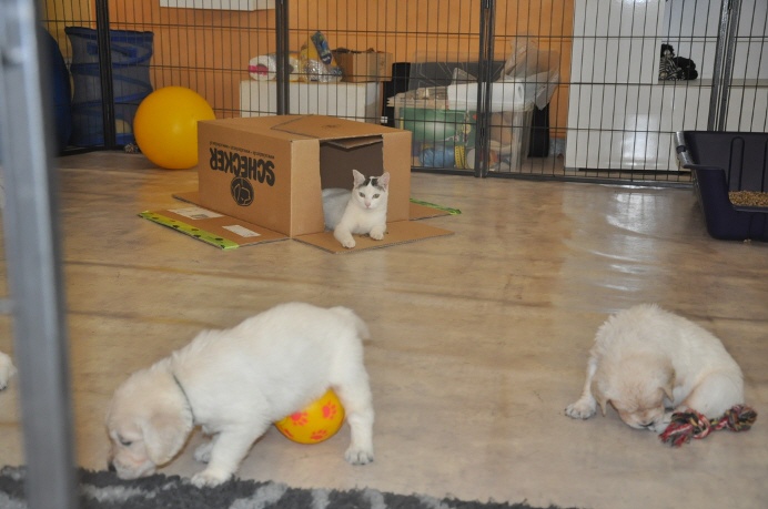 Nachdem das Wetter die letzten Tage nicht so toll war und ein heftiger Wind ging, konnten wir sie noch nicht so richtig in den Garten lassen. Dafür haben sie ihre Welpenecken und das Spielzeug entdecken können und mit Katze Chichi und den anderen Mädels heute Spaß gehabt. Für euch haben wir ein paar tolle Schnappschüsse machen können!!