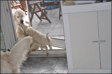 Die letzten 12 Tage haben uns wieder einige unserer Zwerge verlassen und sind mittlerweile mit ihren Familien gut im neuen Zuhause angekommen. Unsere kleine Mannschaft ist auf "drei" geschrumpft und es wird langsam ruhig. Das erste Welpenzimmer ist jetzt abgebaut und die Kleinen fühlen sich mitten unter unseren Mädels schon so richtig wohl und gewöhnen sich langsam daran, dass schon viele ihrer Geschwisterchen und Spielkameraden nicht mehr da sind.