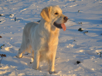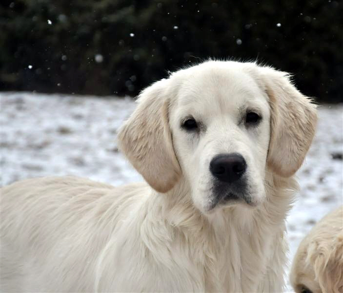 Sie hat ein total ausgeglichenes Wesen - soviel Temperament ihre Mama, wobei sie zwischendurch doch auch immer etwas zurückhaltend ist und sich alles erst mal in Ruhe anschaut. Dabei ist sie aber einfach nur superlieb!! Nach der Trauer über den Auszug ihrer Geschwisterchen hat sie unsere Familie und die großen Goldies so richtig aufgemischt und es macht auch heute noch einen riesen Spaß, mit ihr zusammen zu Spielen, zu Toben und natürlich auch zu Lernen.