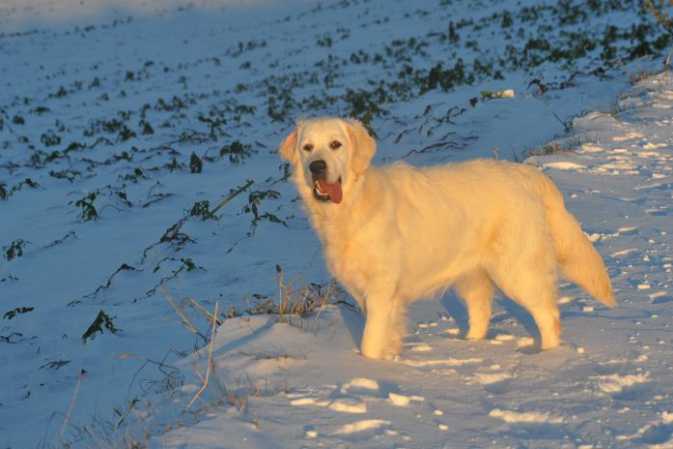 Sie hält uns momentan alle - Zwei- und Vierbeiner - mit ihrem Übermut auf Trab, zeigt viel "Will to please" und ist ein richtiger Goldschatz. Schon jetzt hat sie ein ausgeglichenes Wesen (wie soll's auch anders sein bei der Oma, Mama und Papa :-) ) und geht