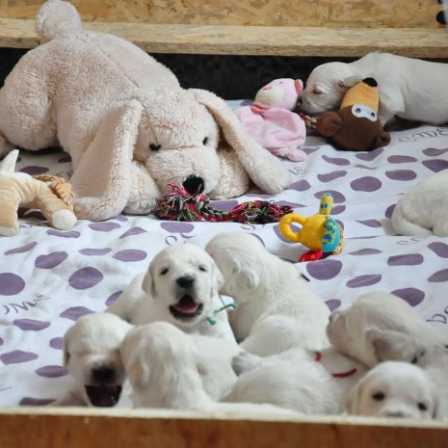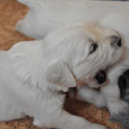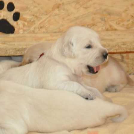 Jetzt sind die Augen und äußeren Gehörgänge geöffnet. Die Welpen nehmen in dieser Zeit ihre Geschwister sowie die Umgebung wahr.