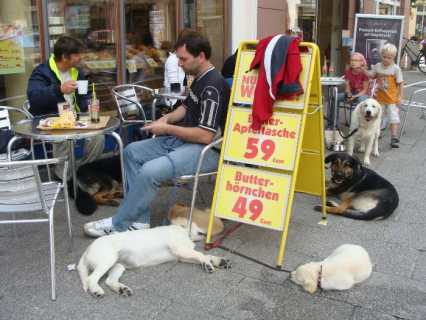 ein Ausflug zusammen mit den Welpenfamilien in die Stadt, damit sie auch den Verkehrslärm