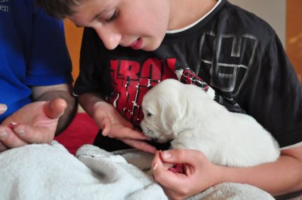 Unsere Welpenfamilien dürfen das erste Mal zu Besuch kommen. Danach haben wir samstags und sonntags im Wechsel Welpen-Besuchstage