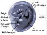 Ebenso beginnt der Embryo mit der Anlage der Leber, Kiefer, Augen, Ohren und Nase.