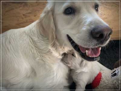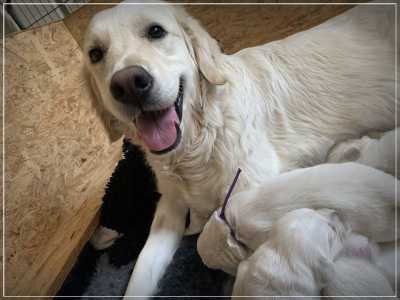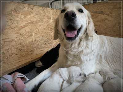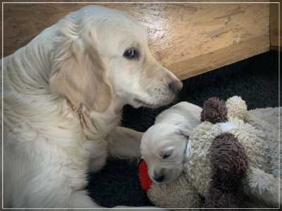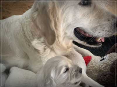 Jette gibt alles :-) - sie hegt und pflegt weiter und ist bei jedem Mucks sofort da; zwischendurch nimmt sie sich aber dann auch mal ne Pause und liegt entspannt bei den anderen Mädels. Also alles Bestens und wir freuen uns auf die nächsten Tage mit der kleinen Bande.