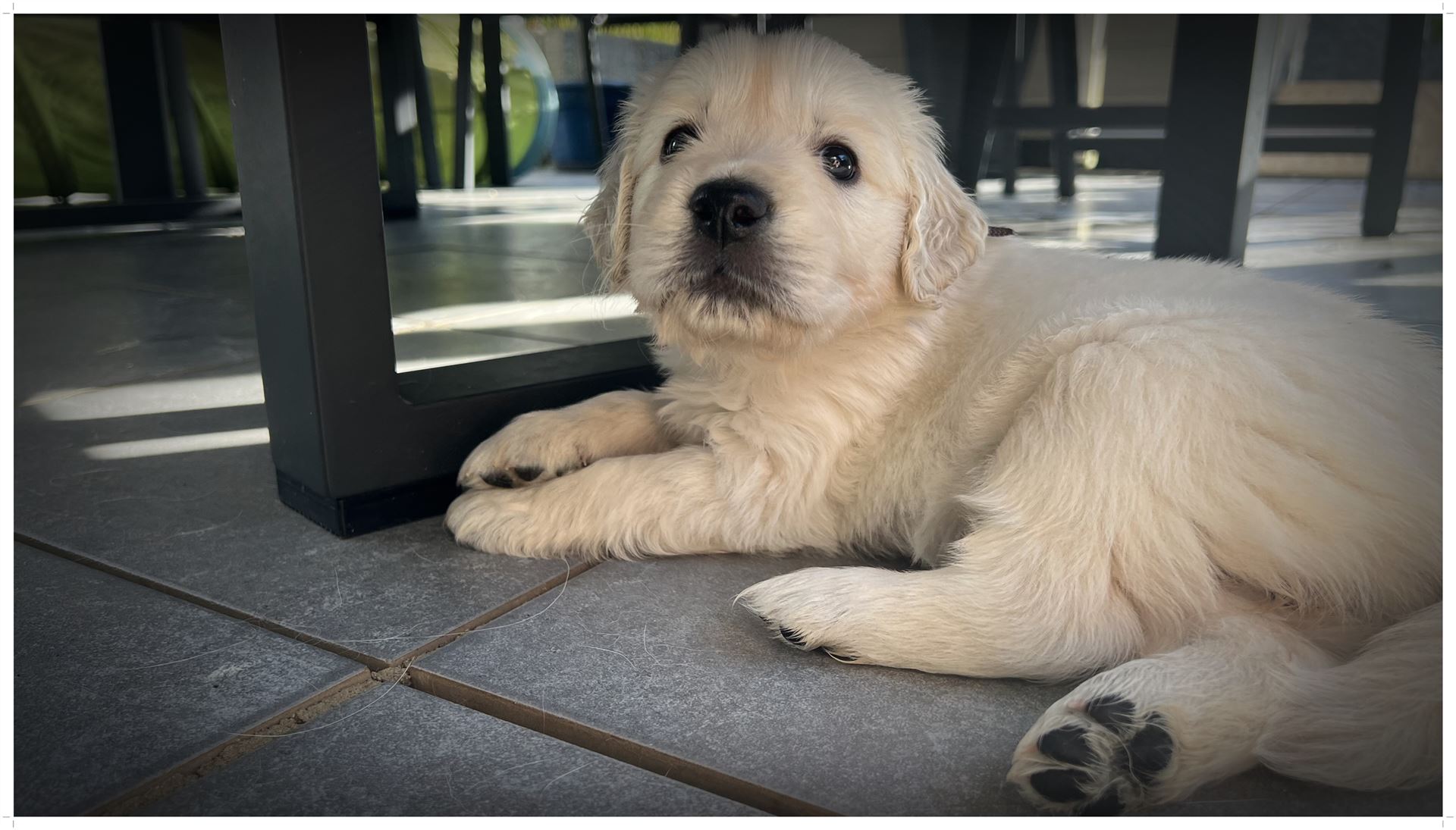 Die Zwerge sind mittlerweile richtig aktiv: Wenn sie wach werden, stehen sie geballt an der Tür und wollen nur noch raus - ... und da haben sie einen Heidenspaß. Jede Ecke und alles was da so rumsteht wird beschnüffelt und ausgetestet. Auch die Welpengeräte sind super beliebt und natürlich unsere Gräser ; die sind inzwischen eingezäunt, damit da am Ende noch was übrig ist, wenn sie dann zu ihren Familien umziehen ;-)